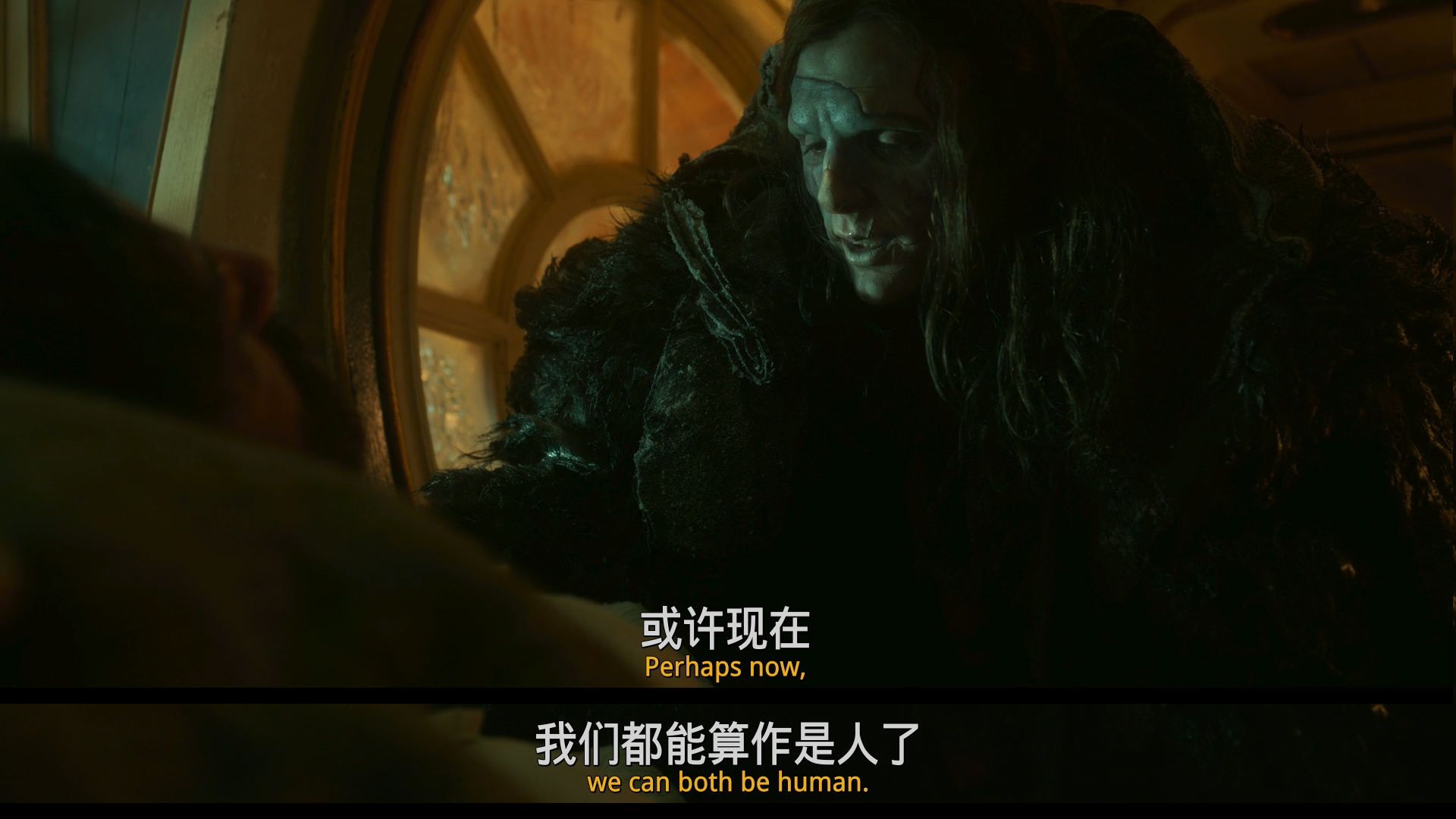 当维克多不再把弗兰肯斯坦视为肮脏的怪物,而是儿子;且弗兰肯斯坦也不怨恨自己的出身,从最后一次叫着父亲的名字重新出发,继续活下去,这一刻,他们都能算作是人了。